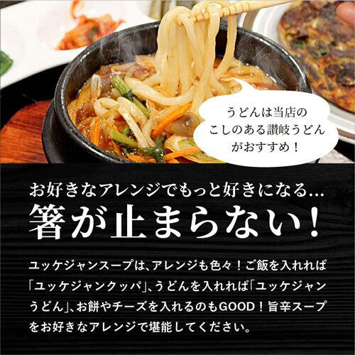 ユッケジャンスープは、そのままでももちろん、お好みでご飯やうどんを加えて楽しむことができます。アレンジ次第で、家族や友人と共に新たな味わいを発見できる一品です。手軽に本格的な味を楽しめるので、料理初心者の方でも安心してご利用いただけます!