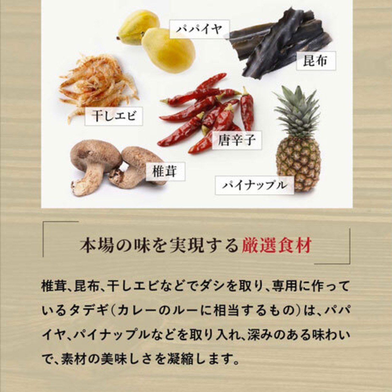 牛肉、ネギ、しめじ、椎茸、もやし、小松菜、人参、ずいき、唐辛子、ニンニク、生姜、すりごま、ごま油、醤油、サラダ油、砂糖、みりん、酒、赤ワイン、蜂蜜、胡椒、食塩、りんご、レモン、パイナップル、パパイヤ、キウイ、玉ねぎ、大根、ゲンコツ、豚骨、鶏足、椎茸、昆布、海老、ローリエ