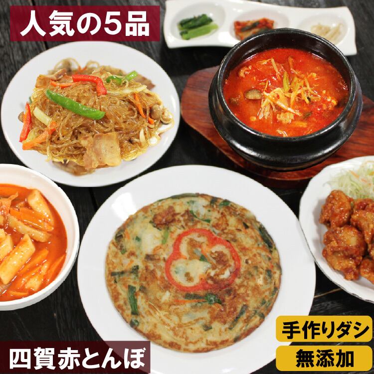 韓国グルメ5種ご自宅用セット【冷凍または冷蔵便】トッポキ、ヤンニョムチキン、海鮮チヂミ、ユッケジャンチャプチェ